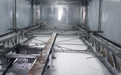 冰勛制冷混凝土冷卻降溫解決方案包含大型片冰機(jī),冰塊生產(chǎn)后通過重力掉入耙冰區(qū),再通過自動耙冰系統(tǒng)將冰塊輸送到攪拌倉,中間配置冷藏儲冰庫用于冰塊的暫存。