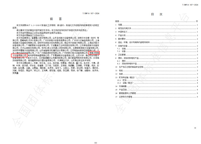 近日,由中國(guó)食品工業(yè)協(xié)會(huì)發(fā)布了《食品用冰生產(chǎn)和經(jīng)營(yíng)衛(wèi)生規(guī)范》(T/CNFIA 187-2024,冰勛制冷作為制冷設(shè)備源頭工廠,在行業(yè)標(biāo)準(zhǔn)化建設(shè)中邁出了重要一步,榮幸地成為了標(biāo)準(zhǔn)制定的起草單位之一!參與該項(xiàng)行業(yè)標(biāo)準(zhǔn)的起草編制。